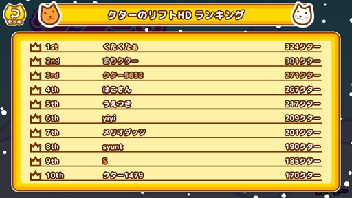 みなさんから寄せられる質問・疑問、ゲームの感想、クターに まつわるエピソードやちょっとした出来事までギガ連射が お答えしちゃう何でもアリのみんなの為のみんなのコーナー。 ◆『とあるスキーヤー』さんからのお便り S氏のチャレンジのため「クターのリフト」頑張っていたところ、気になった部分がありましたのでお便りさせていただきます。 レトロの方ではほとんどいなかったリフトの反対方向にまぁまぁの確率でクターさんが乗っているのですが、これは一体どういった意味があるのでしょうか… チャレンジへのご参加ありがとうございました!! S氏には勝てましたか? 勝っても負けても競い合い、切磋琢磨することに意義がある…! 今月も是非参加よろしくお願いいたします! てなことでご質問の件ですが、リフトに乗ったものの、コースを間違えて思ったより傾斜が急だから諦めちゃったクターさんとか、急に用事を思い出したクターさんとか、あとはそもそもリフトにただ乗りたいだけのクターさんとか等がよく反対方向のリフトに乗って帰ってくるんだそうです。 (実際のスキー場でやっちゃうと迷惑になるのでダメダメよ) レトロの時は… たぶん別の斜面からおりているんじゃないかな~と思います! みんなのコーナー投稿は下記のお問い合わせから! メール・TwitterどちらからでもOK! お問い合わせ